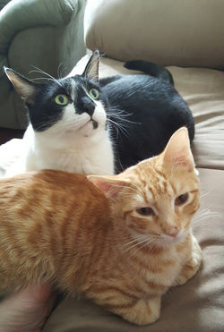 Felix is our old man of the cat family. We got Felix when he was very young during the middle of a blizzard we drove to the Animal Shelter and got him. Felix is the Black and White Cat. Milo, also a rescue, came next and he is the orange cat. Milo really likes my middle daughter and when she is around he really sticks to her. Spooky, also a rescue, the solid black cat is madly in love with Felix. Felix could take it or leave it. Scooter was a cat that I rescued out of the middle of the road. Scooter is a good cat and has turned out to be a very beautiful cat. Scooter definitely has some Maine Coon in him somewhere.